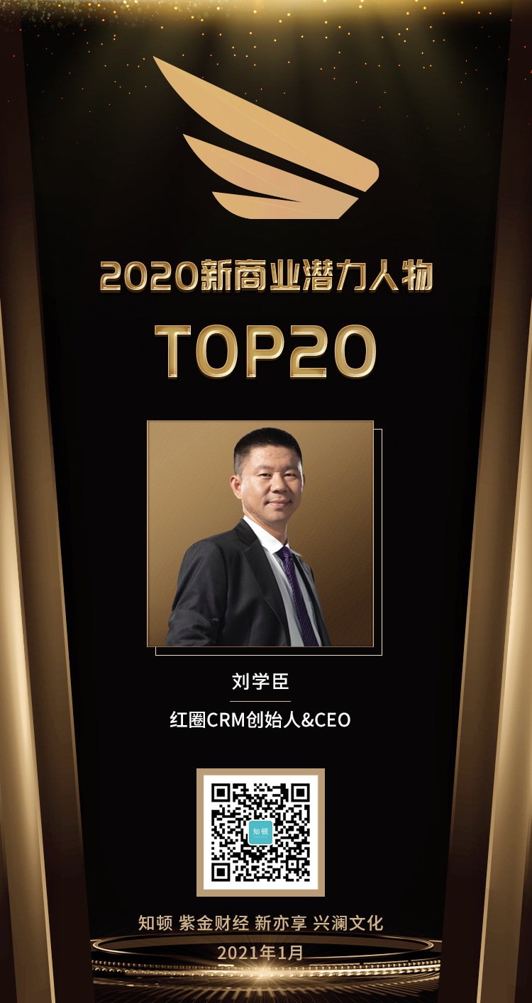 紅圈?CRM?與創(chuàng)始人劉學(xué)臣雙雙入選《2020?新商業(yè)潛力榜》