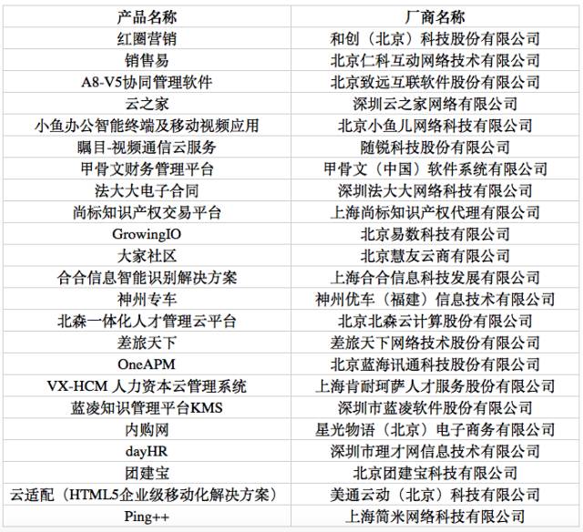 14進(jìn)1的入選比率 首批入選產(chǎn)品皆是企業(yè)級服務(wù)領(lǐng)域明星