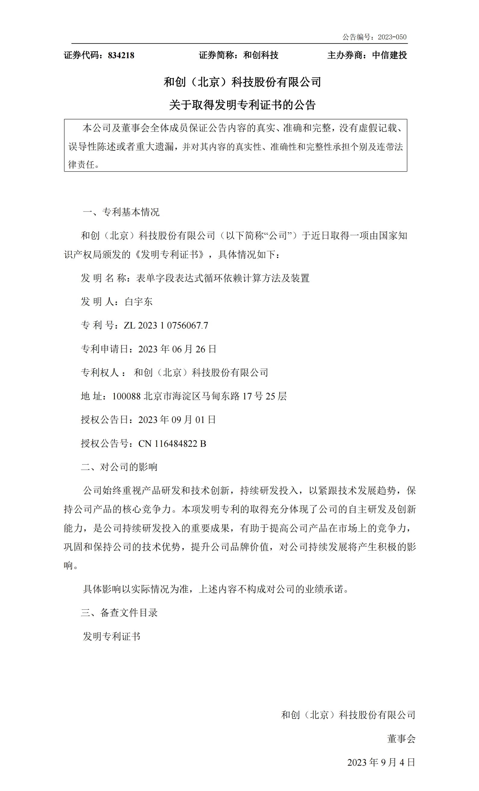 紅圈新聞?|?喜報(bào)!和創(chuàng)科技近日連續(xù)取得兩項(xiàng)最新發(fā)明專利!