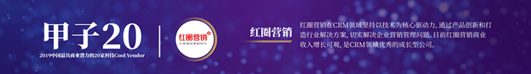 “紅圈營銷”榮獲甲子20“2019中國最具商業潛力的20家科技Cool?Vendor”