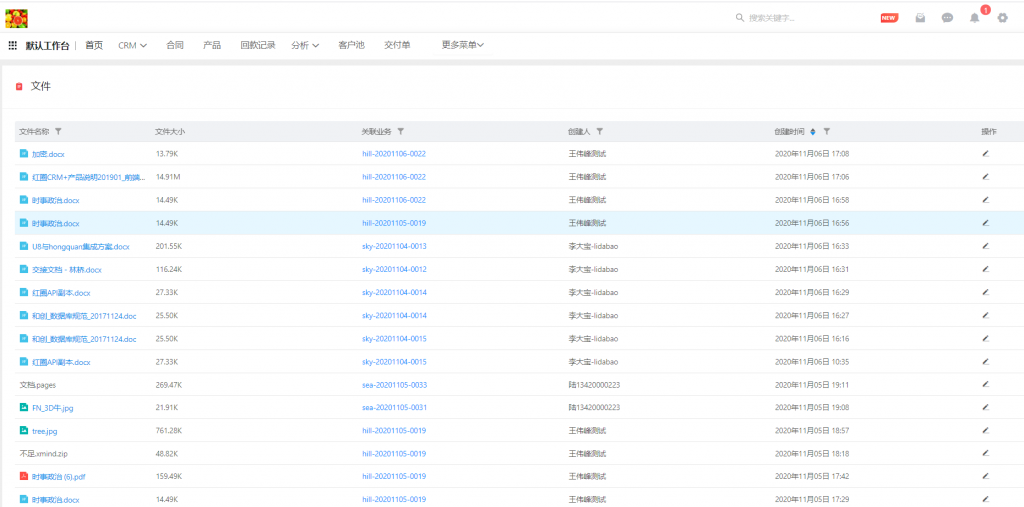 - 進入文件后,有管理權(quán)限的用戶可以看見全部文件,支持表頭篩選、下載及刪除