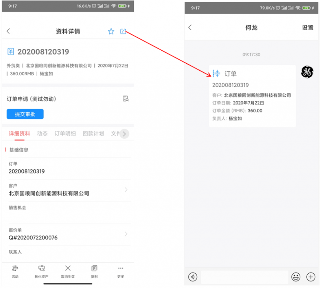 - 手機端可分享業(yè)務(wù)數(shù)據(jù)至IM,接受方可直接打開,但需要校驗數(shù)據(jù)權(quán)限