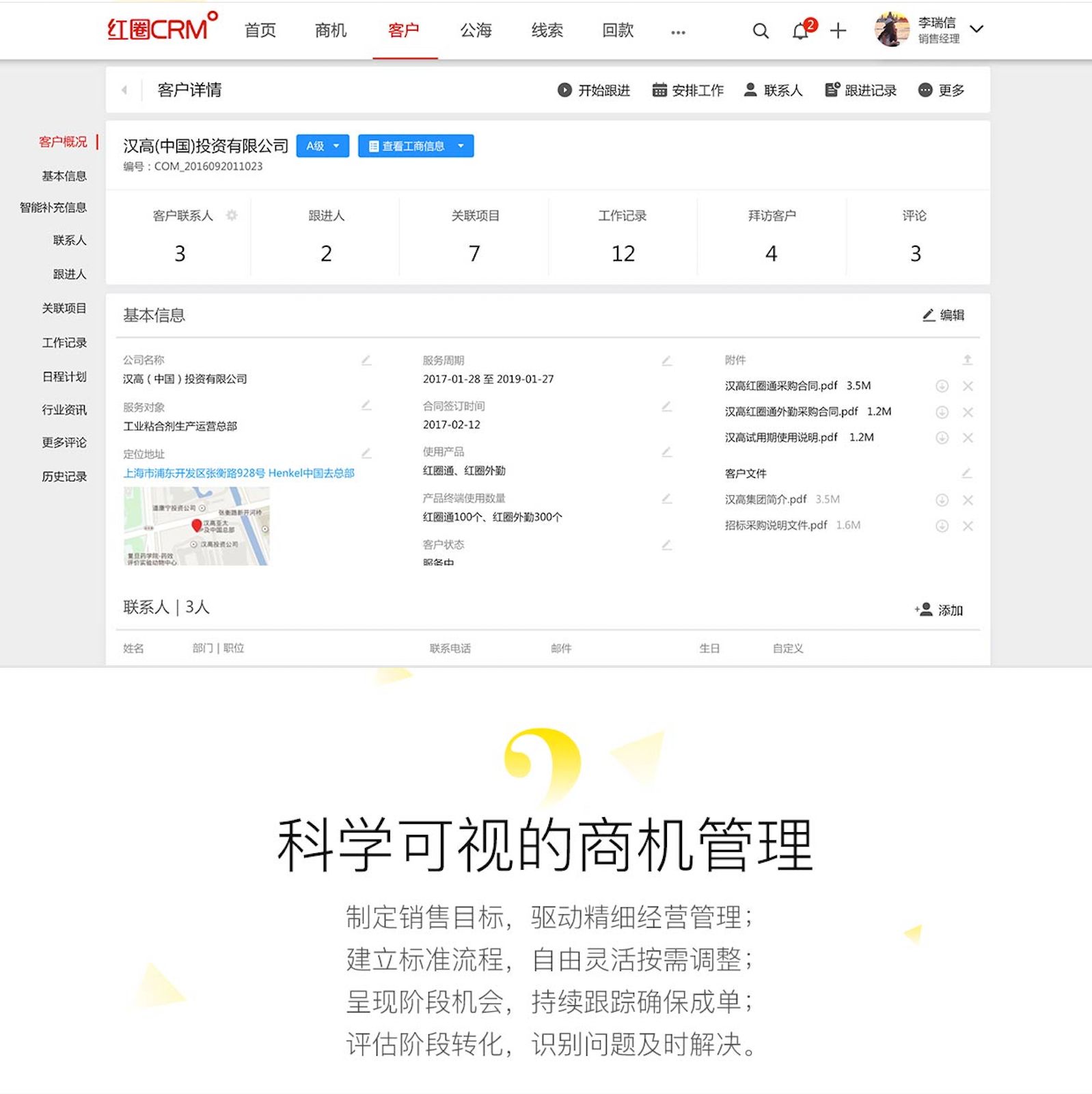 客戶管理更聚焦,全景呈現(xiàn)客戶管理過程,掌控客戶跟進