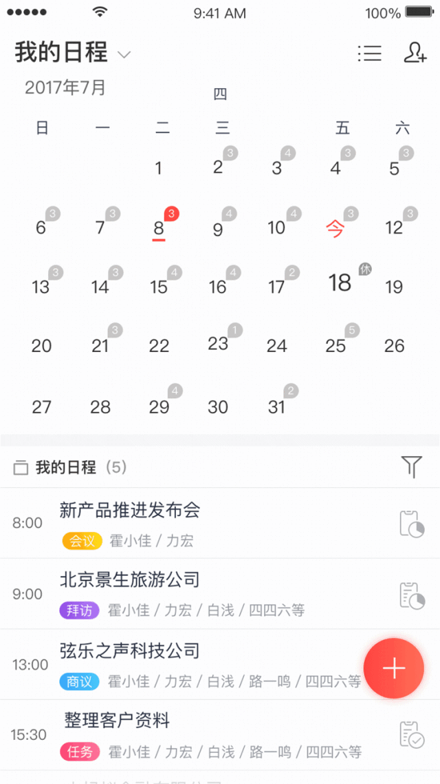 紅圈CRM+的日程管理功能,能夠幫助業(yè)務(wù)人員合理制定工作計劃,各項(xiàng)計劃完成情況全程記錄可追溯,業(yè)務(wù)人員每天拜訪了多少家客戶、新增了多少客戶資料、推進(jìn)了哪個項(xiàng)目等,都能得到清晰的呈現(xiàn),管理層可以據(jù)此對員工的能力和工作狀況進(jìn)行科學(xué)評估,并結(jié)合業(yè)績數(shù)據(jù)對業(yè)務(wù)員進(jìn)行及時指導(dǎo)。