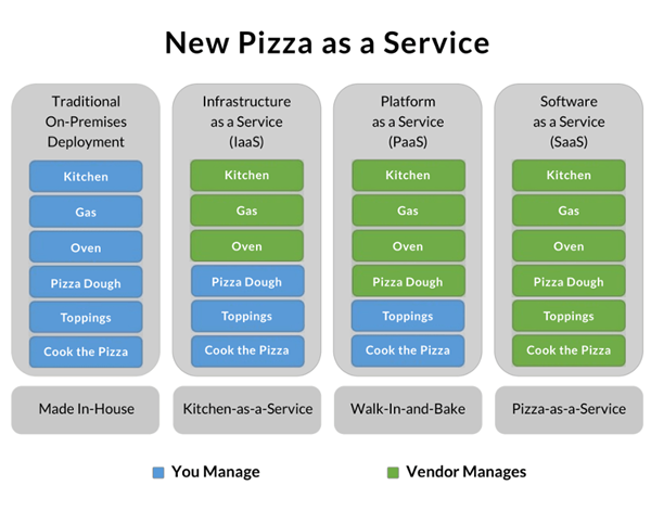 IBM 的軟件架構(gòu)師 Albert Barron 曾經(jīng)使用披薩作為比喻,解釋這個(gè)問(wèn)題。David Ng 進(jìn)一步引申,讓它變得更準(zhǔn)確易懂。