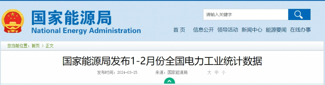 3月25日,國家能源局發布1-2月份全國電力工業統計數據。