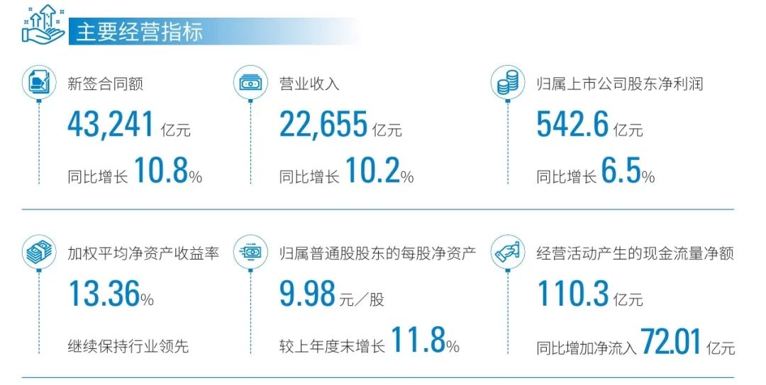 日前,中國(guó)建筑集團(tuán)有限公司發(fā)布2023年度報(bào)告。根據(jù)報(bào)告,2023年該公司新簽合同額43241億元,同比增長(zhǎng)10.8%;營(yíng)業(yè)收入22655億元,同比增長(zhǎng)10.2%。