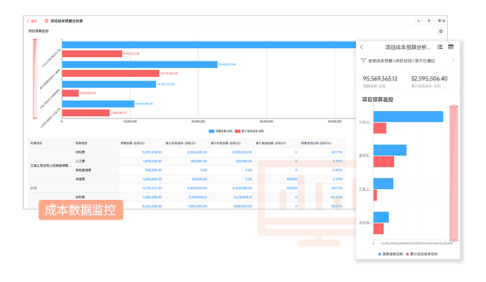 目標成本智能對標:系統支持導入目標成本總計劃,實時歸集人、材、機等實際成本數據,自動比對差異并觸發(fā)預警。例如,當某項目鋼筋采購量超計劃10%時,系統將自動凍結后續(xù)采購申請,避免成本失控。